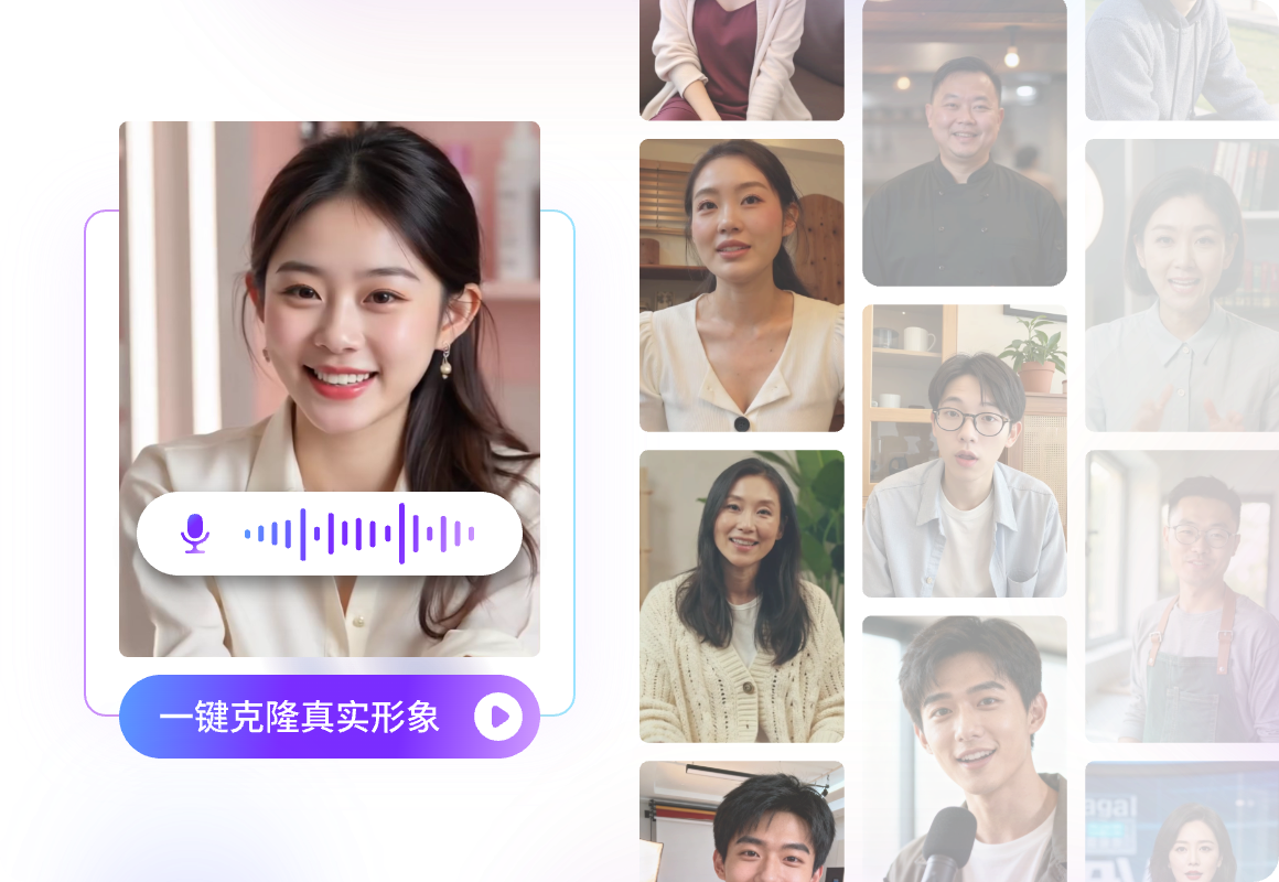 利用前沿的AI数字人技术,1:1完美克隆您的形象与声音,告别口播困扰真实用户口吻更具说服力,实现"一人千面"营销裂变!